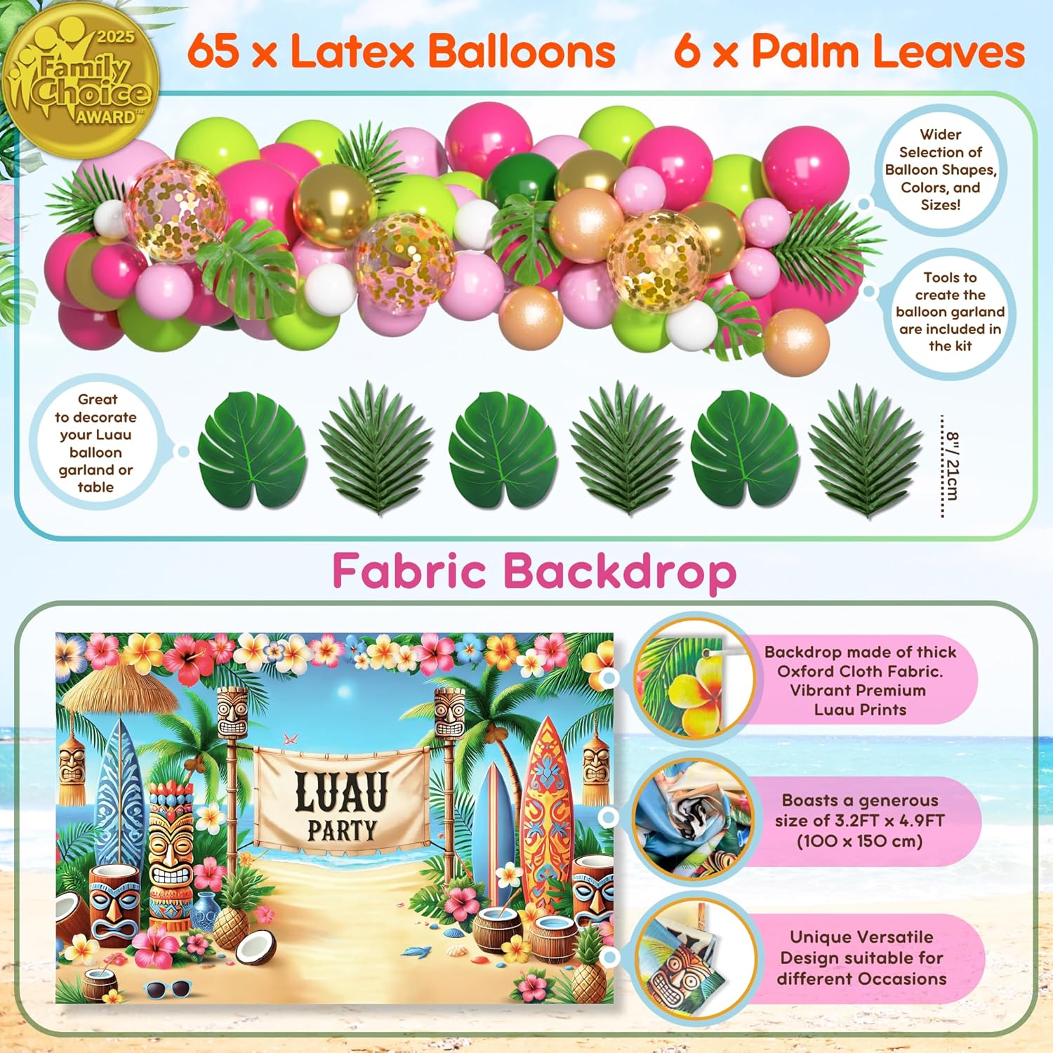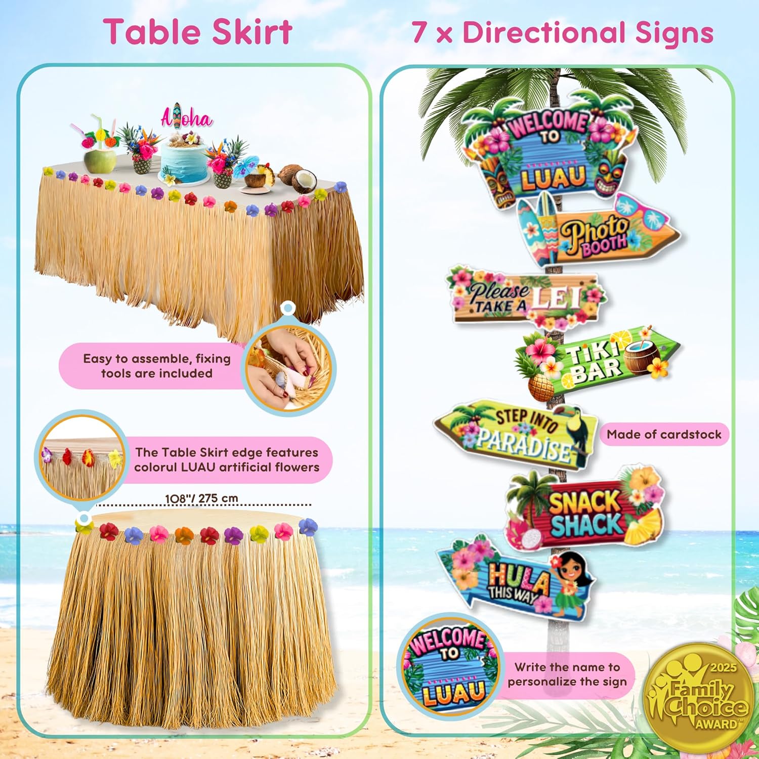| Included Components | Banner, Cake Topper, Garland, Luau Party Decorations, Tablecloth |