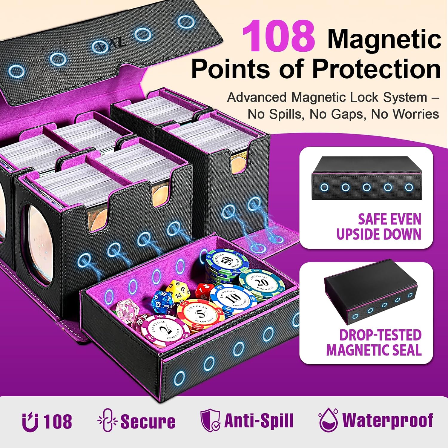 | Included Components | 4 Magnetic Card Holders, Dice Tray, Removable Deck Case, Storage Box |